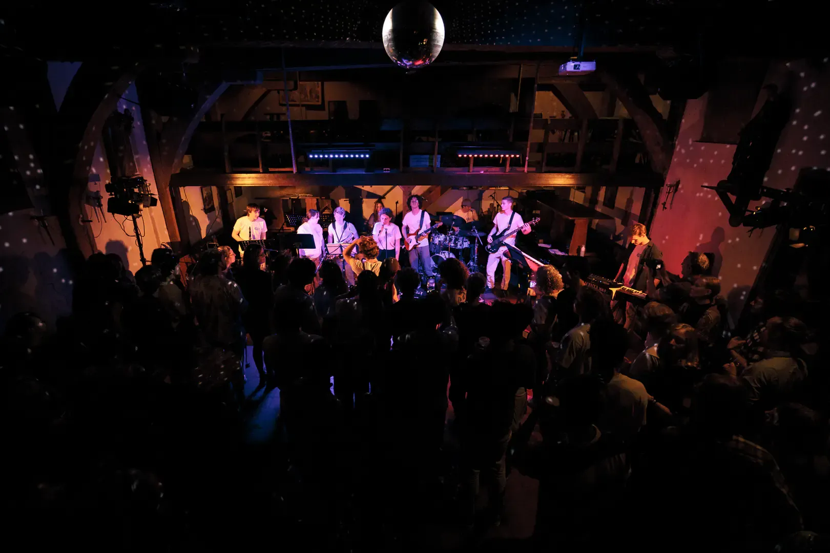 Among the many student associations in Delft, Groover sets itself apart as one of the more unique and more recognisable ones with their music-forward jazz identity. They have a wide rotation of bands that play at various events throughout the city, one of which being Magatama; a 16-headed fusion band with all bits and bobs to create grander sounding versions of songs that you might already know. This occasion specifically was the last gig with this configuration, held at the cozy café Broeder Lazarus.
